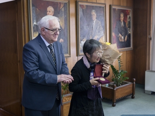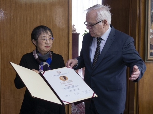 中島教授のブラジェ・コネスキ賞受賞 平成31年4月17日 2019年4月17日,日本のスラブ語・マケドニア語研究の第一人者である中島由美教授(一橋大学名誉教授)に対し,マケドニア科学芸術アカデミーよりブラジェ・コネスキ(Blaze Koneski)賞が授与されました。ブラジェ・コネスキ賞とは,マケドニアの科学・文化・芸術の発展に大きく貢献した外国人に対して授与される賞で,中島教授は日本人として最初の受賞者です。
