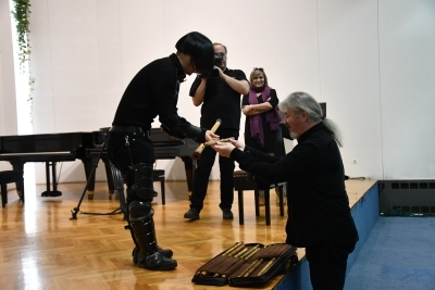 2月19日,スコピエ大学音楽学部において,尺八奏者入江要介氏によるマスタークラスが開催され,音楽学部の教授や学生など約140人が参加しました。