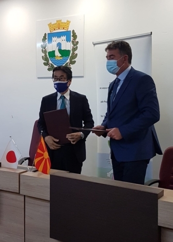 12月6日、標記プロジェクトの署名式がオフリド市庁舎で開催され、澤田大使、ペツァコフ・オフリド市長、バレフスキ・オフリド総合病院院長が出席し、澤田大使とバレコフスキ院長が贈与契約に署名を行いました。