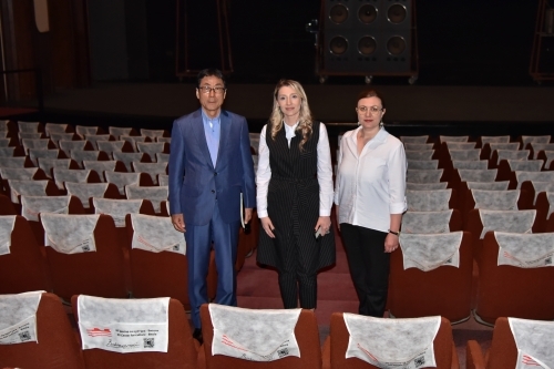 澤田大使のビトラ・カルチャーセンター訪問 令和4年5月25日 23日、澤田大使は、ビトラ・カルチャーセンターを視察するとともに、マヤ・イリエフスキ館長とビトラにおける音楽、文化フェスティバルにおける日本と北マケドニアの交流の可能性について意見交換しました。
