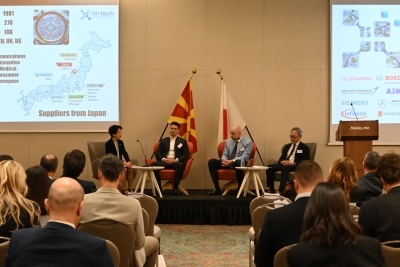 The program included presentations by the Japanese companies, introducing their activities and areas of interest. This was followed by a panel discussion in which two Macedonian companies shared their successful examples of partnership with Japanese companies. The event was concluded with an open discussion and networking session.