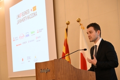 On March 11, the Embassy of Japan, in cooperation with the Ministry of Foreign Affairs and Foreign Trade of North Macedonia, hosted an event “LinkUp Business: Japan-North Macedonia” at a hotel in Skopje. The event aimed to foster connections between the business communities of Japan and North Macedonia. Nine Japanese companies based in neighboring countries participated in this event, which was attended by more than 160 people from the Macedonian political, business, and governmental sectors.